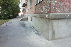 Фотогалерея/Заменены окна подъездов и проведен ремонт цоколя в МКД по ул. Нансена дд.118, 116, 114/18